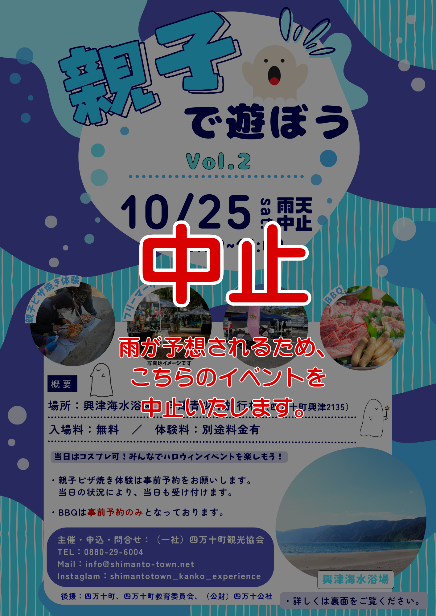 10月25日(土)に開催予定であった「親子で遊ぼうVol.2」は、当日の雨予報に伴い中止の判断をいたしました。