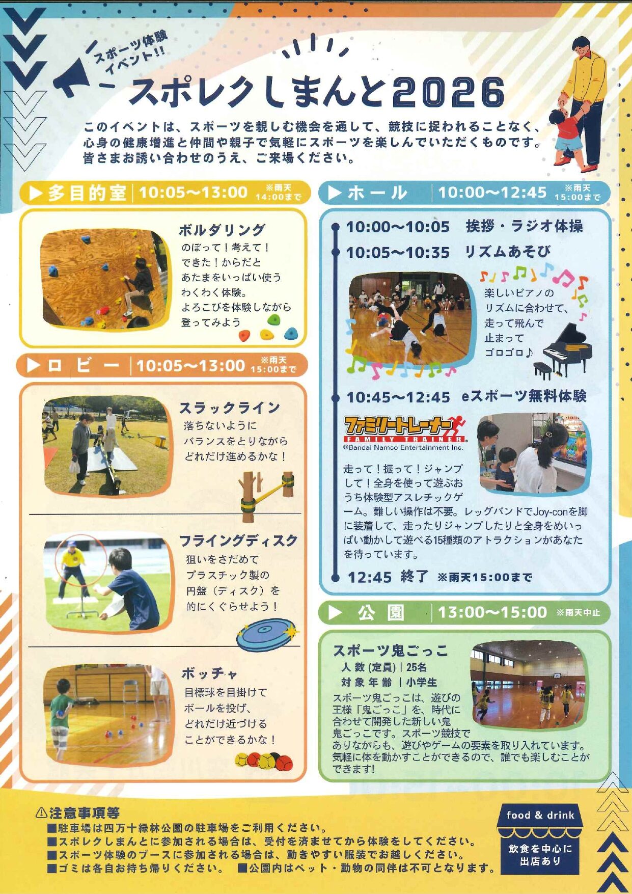 ・スポーツ体験ブースに参加される場合は、動きやすい服装でお越しください。