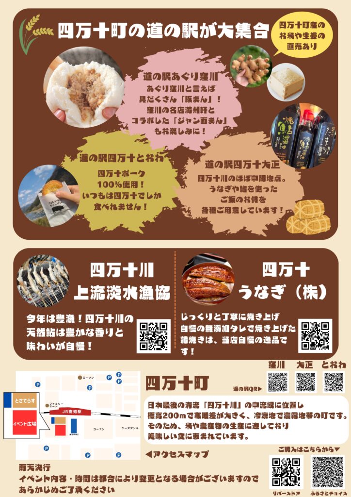 道の駅あぐり窪川からは人気の「具だくさん豚まん」と窪川の名店満州軒とコラボした「ジャン麵まん」、道の駅四万十大正からは鮎やうなぎを使ったご飯のお供を、道の駅四万十とおわからは四万十ポーク100%使用の「カリーパン」を揚げたてでご用意いたします!!